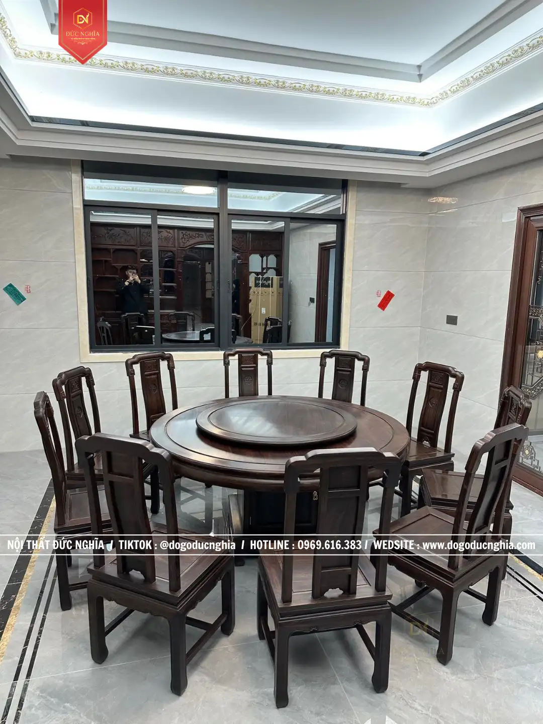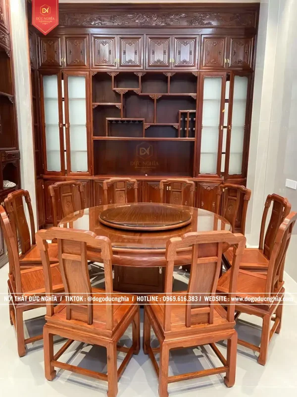Chi Tiết Về Bàn Ăn Tròn Mâm Xoay Gỗ Hương