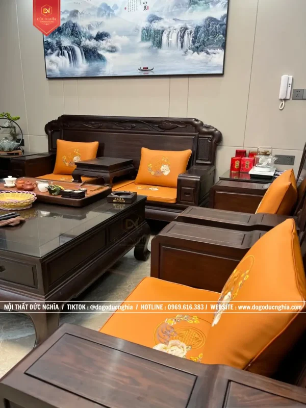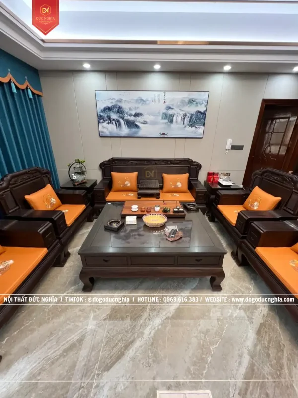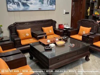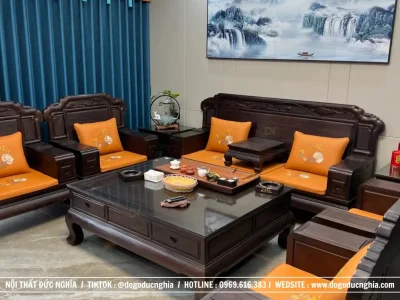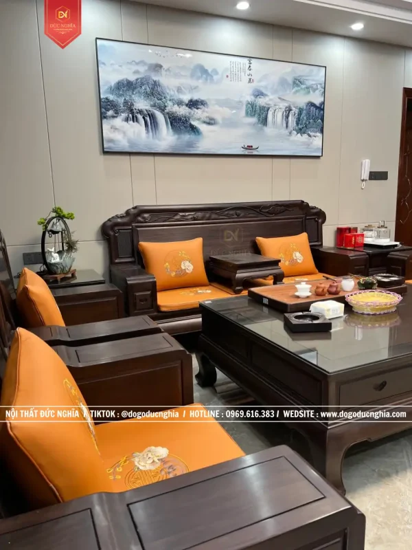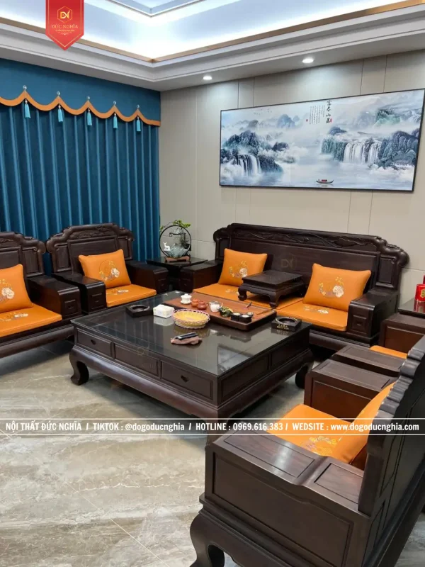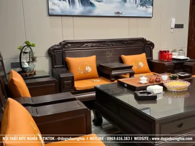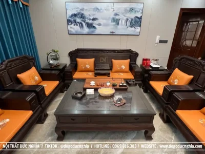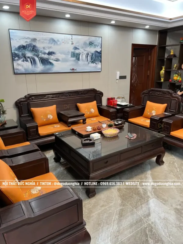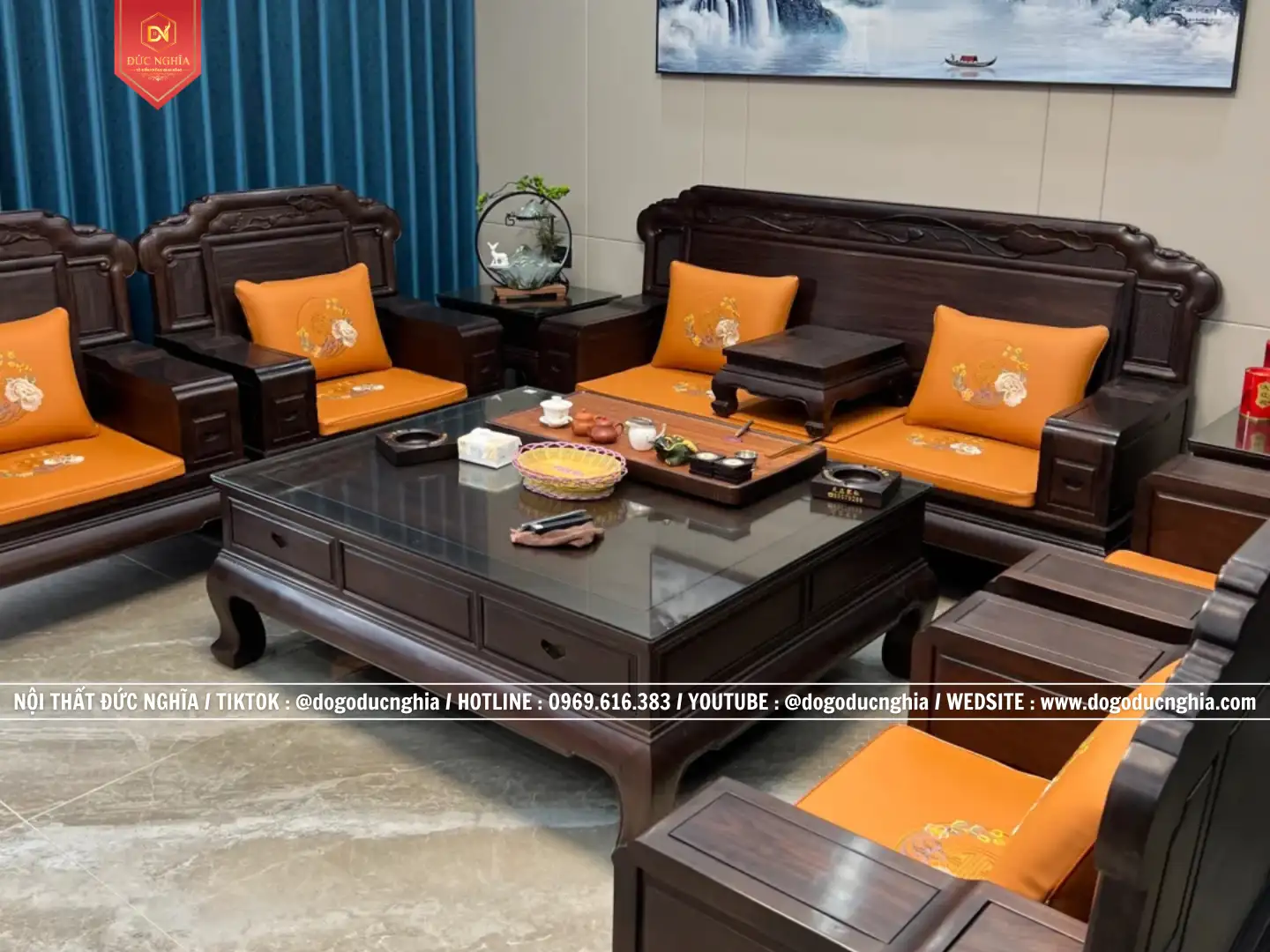 Bộ sofa gỗ Đức Nghĩa không chỉ là món nội thất phục vụ sinh hoạt hằng ngày, mà còn là biểu tượng của gu thẩm mỹ tinh tế và đẳng cấp của gia chủ. Dưới ánh sáng ấm áp, từng đường vân gỗ, từng họa tiết chạm khắc như được thổi hồn, mang đến cảm giác ấm cúng, thanh lịch và sang trọng cho căn nhà. Với sự kết hợp hoàn hảo giữa chất liệu, màu sắc và phong cách thiết kế, bộ ghế sofa gỗ Đức Nghĩa chính là lựa chọn hoàn hảo cho những ai yêu thích vẻ đẹp tinh tế, bền vững và mang đậm phong cách Việt.