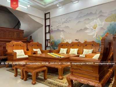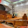 2. Bộ sản phẩm được gia công từ chất liệu gỗ Hương  . Dòng gỗ đang ưa chuộng và sử dụng phổ biến hiện nay bởi những ưu điểm : chất gỗ đanh, chất nặng, tom gỗ mịn, vân gỗ đẹp mắt…