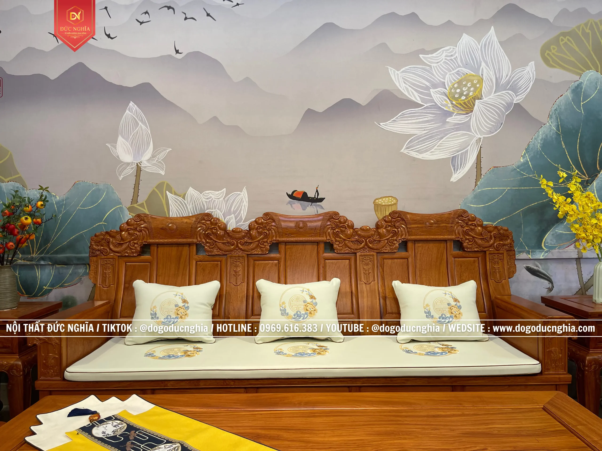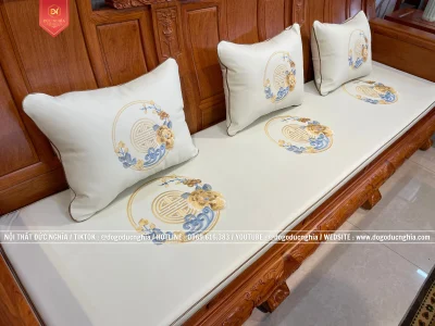 Bộ ghế Như Ý Khánh Voi được kết hợp cùng nhưng bộ đệm gối da cao cấp làm tăng thêm vẻ đẹp sang trọng, ấm cúng cho phòng khách. Những họa tiết trên đệm gối da được thêu tỉ mỉ, tinh tế. Chất liệu Da vi sợ cao cấp – Xốp bọt biển – Sơ dừ được ép cùng bông gòong – Cói giúp đàn hồi tốt, thông thoáng khí, bảo vệ cột sống. Có rất nhiều màu sắc và họa tiết thêu khác nhau để quí khách hàng lựa chọn.