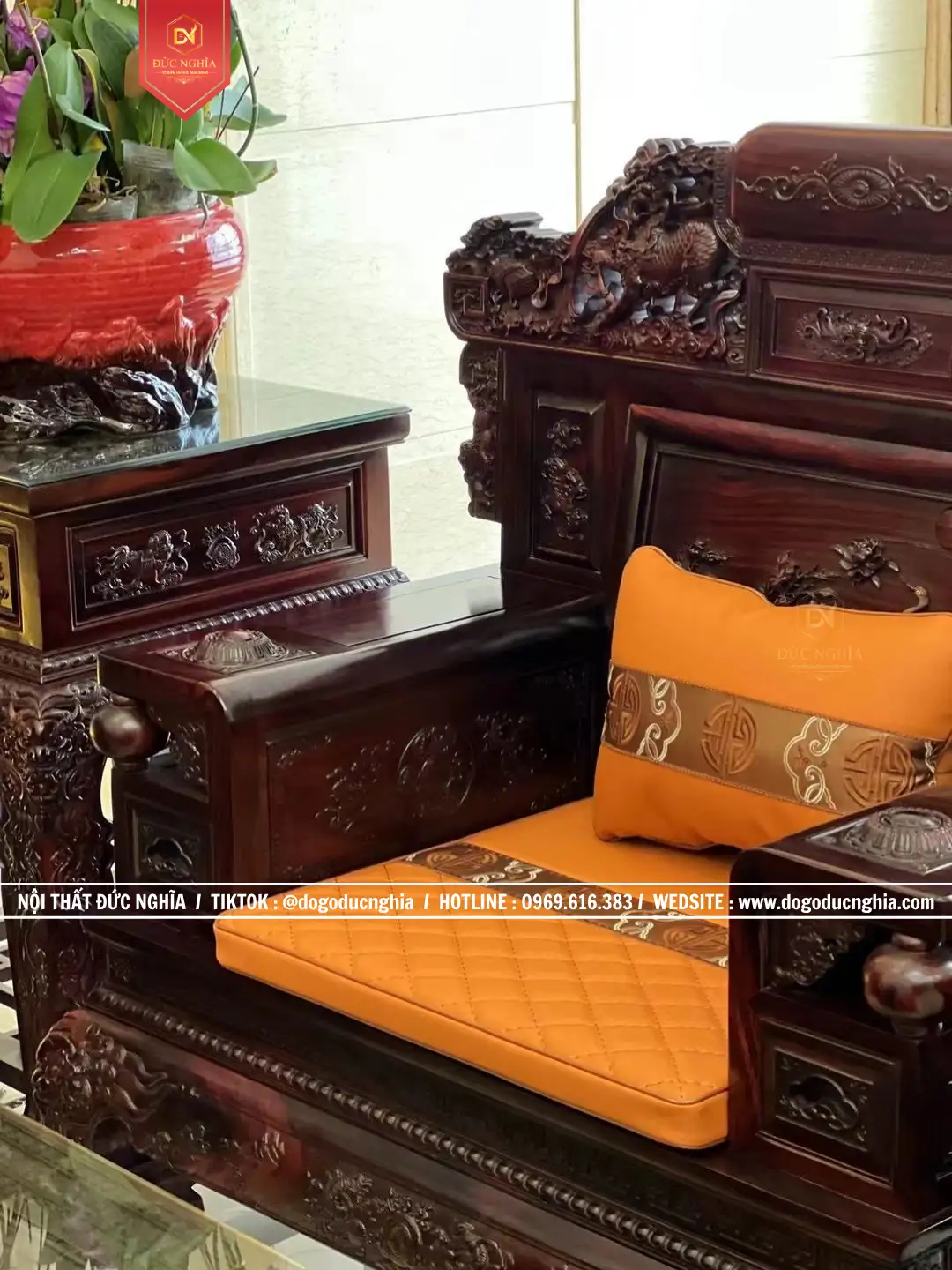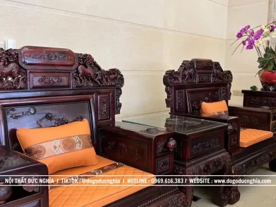 Trong thế giới thủ công mỹ nghệ có những tuyệt phẩm không chỉ dùng để trưng bày mà còn là biểu tượng của sự quyền uy, tài lộc. Đồ Gỗ Đức Nghĩa xin giới thiệu đến quý khách tuyệt phẩm đó chính là bộ ghế Như Ý Kỳ Lân không chỉ chinh phục ánh nhìn bằng dáng ghế bề thế, tay hộp chắc nịch, mà còn khiến người ta say mê bởi những đường chạm khắc tinh xảo, mang đậm hơi thở linh thiêng và phúc lộc.