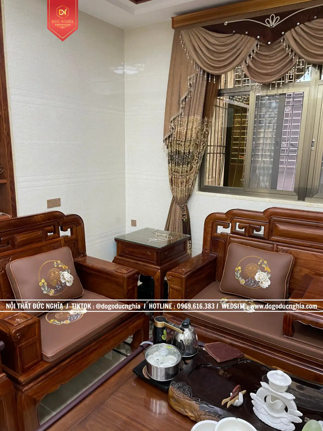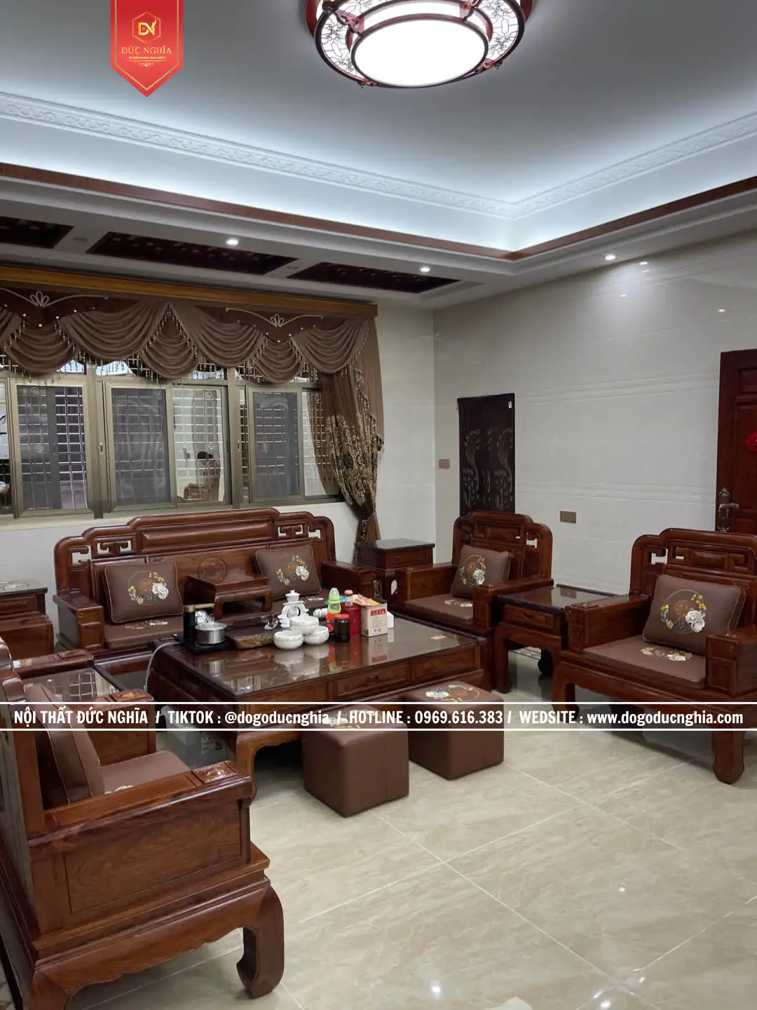 Nhìn chung, không gian phòng khách với bộ ghế Quốc Sắc Thiên Hương mang đến cảm giác ấm cúng, sang trọng và đầy tính nghệ thuật. Đây không chỉ là nơi tiếp khách mà còn là “trái tim” của ngôi nhà – nơi cả gia đình quây quần, nơi thể hiện sự trân trọng đối với những giá trị truyền thống và niềm tự hào về vẻ đẹp nội thất Việt.