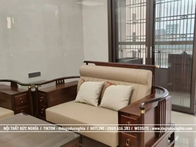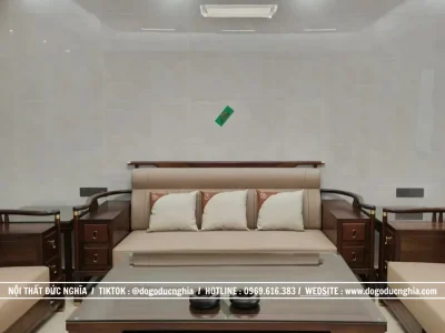 Bộ sofa không chỉ là nơi tiếp khách, mà còn là điểm nhấn thẩm mỹ, nâng tầm không gian sống của gia đình bạn. Sự kết hợp giữa gỗ gụ sang trọng – đệm nỉ mềm mại – thiết kế tối giản tạo nên một không gian tiếp khách vừa ấm áp, vừa hiện đại, phù hợp với nhiều phong cách nội thất khác nhau.