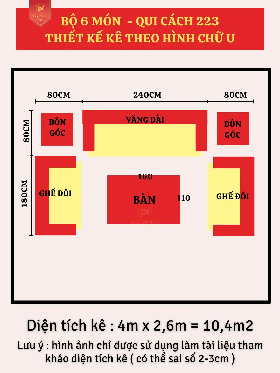 Bộ ghế gồm có 6 món . Phù hợp với không gian phòng khách từ 30m2