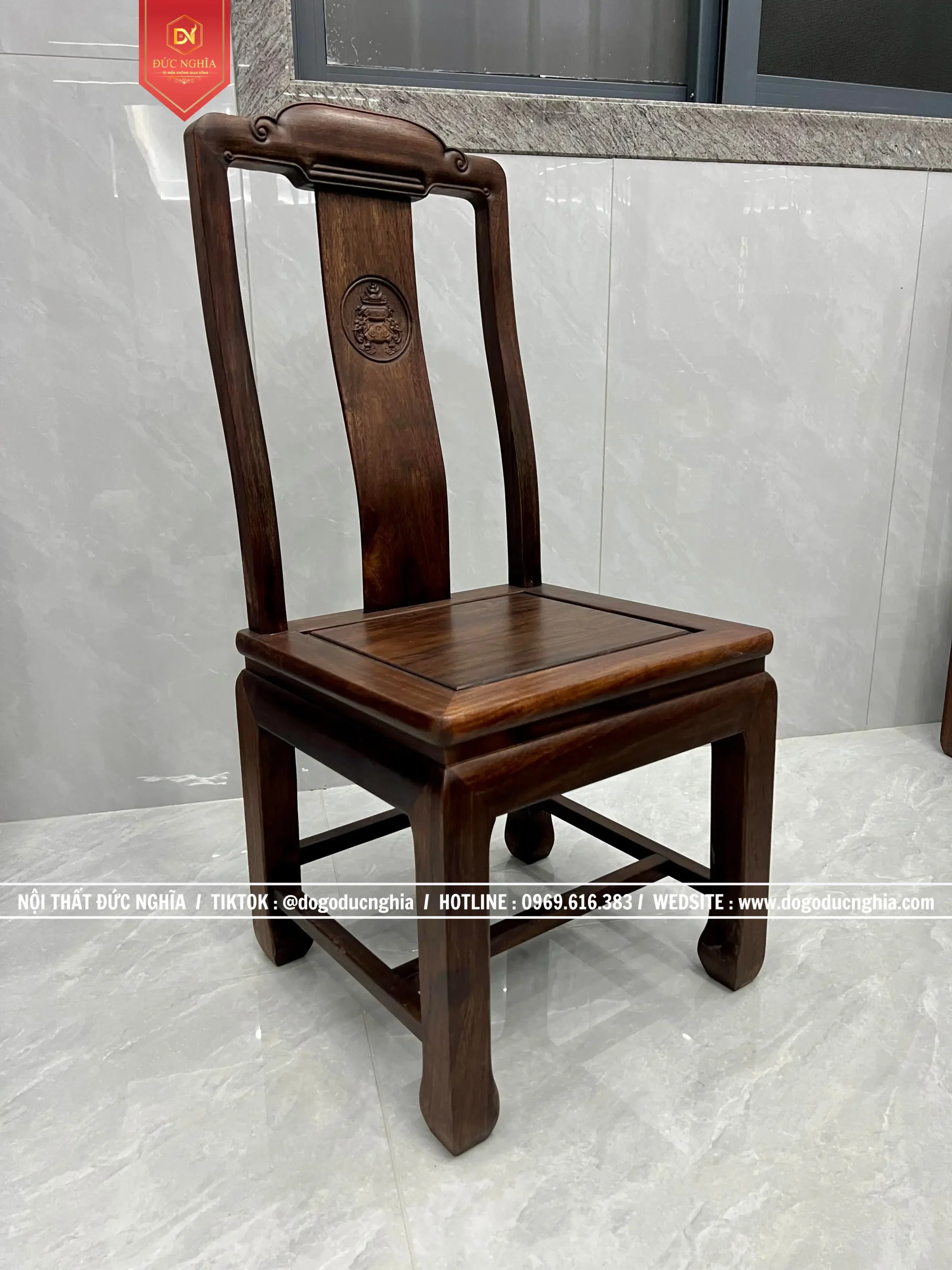 Chương ghế nổi bật: Điểm nhấn chủ đạo vẫn là họa tiết cuốn thư được chạm khắc tinh tế trên phần chương ghế, tượng trưng cho kiến thức và sự cao quý của gia chủ.