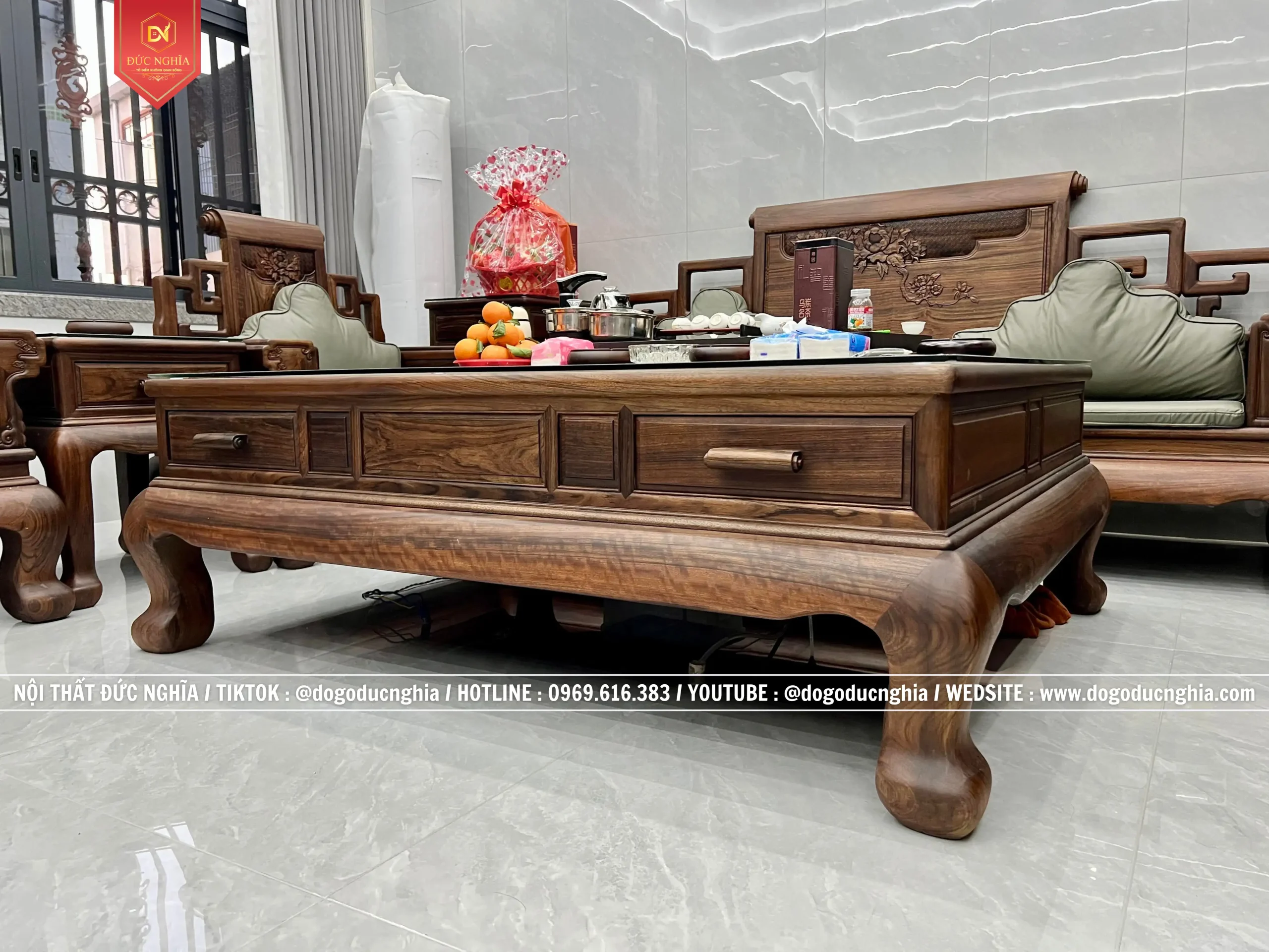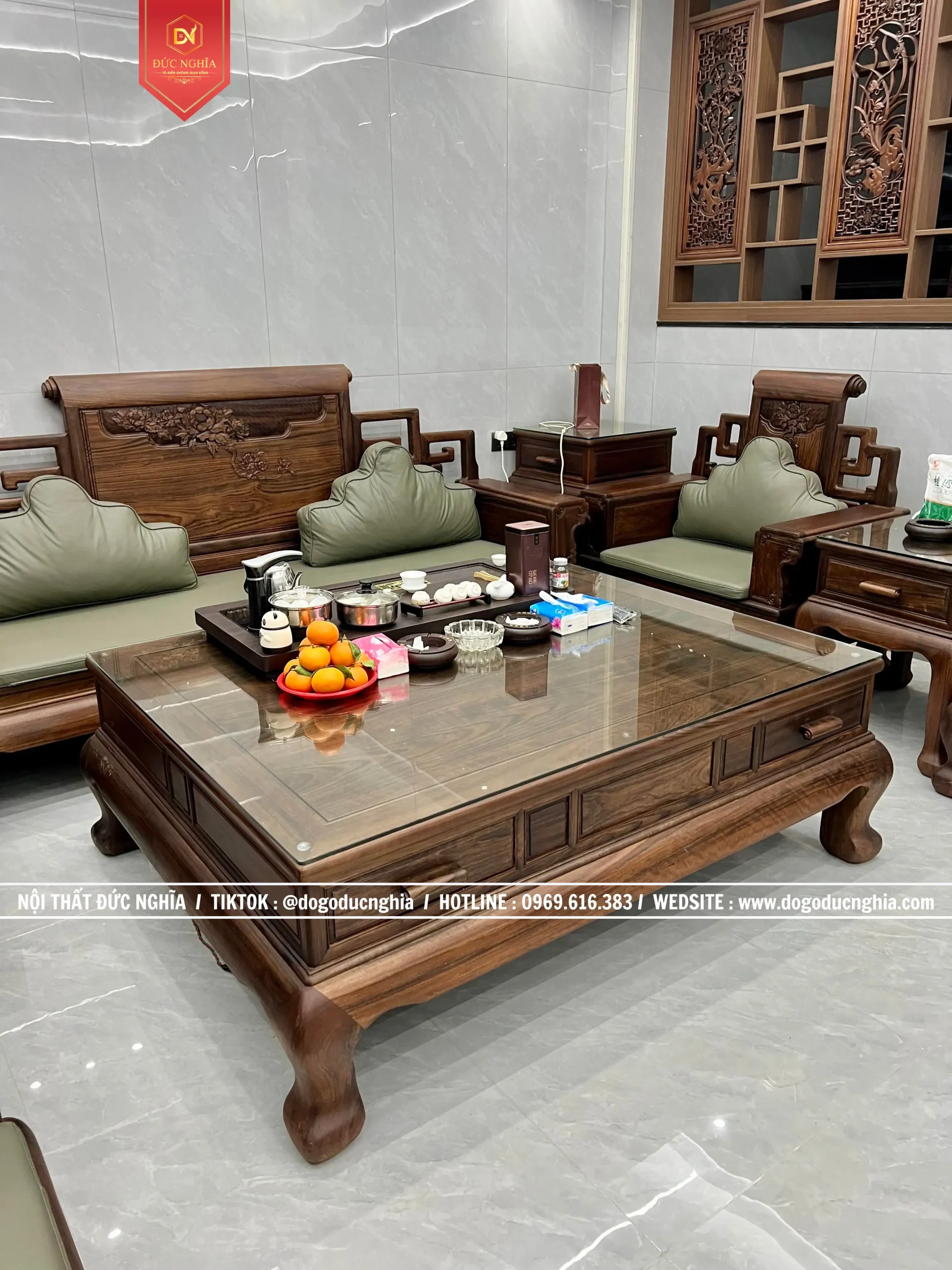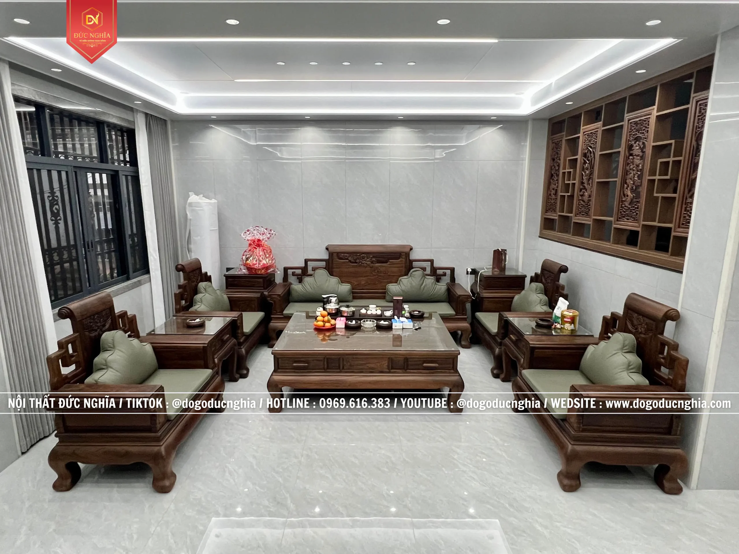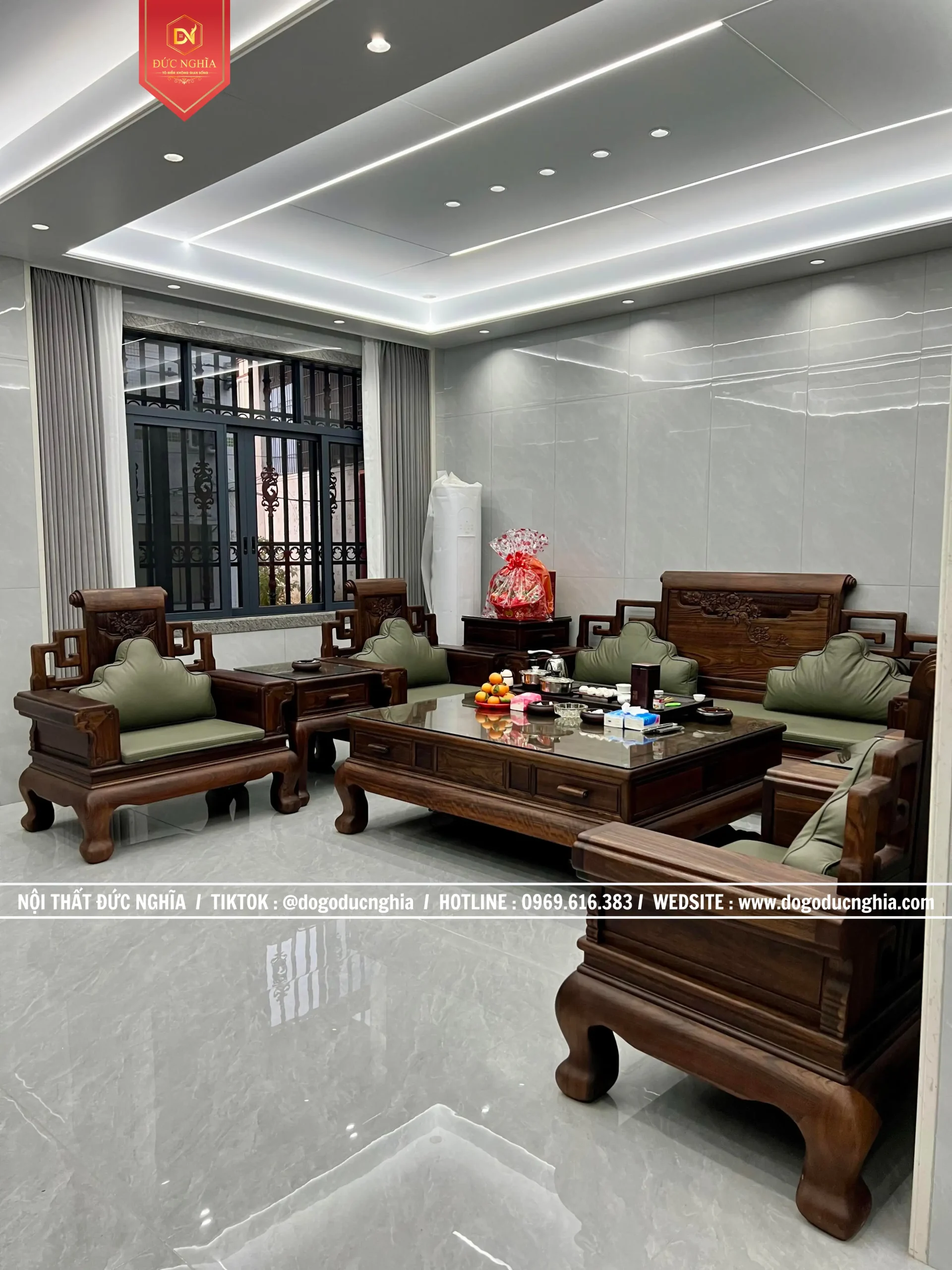 Tổng thể combo phòng khách và phòng ăn mang phong cách hiện đại, trẻ trung nhưng vẫn giữ được tinh thần nội thất gỗ truyền thống Việt Nam. Tùy theo diện tích và bố cục từng ngôi nhà, cơ sở Đức Nghĩa luôn sẵn sàng tùy chỉnh kích thước, kiểu kê và thiết kế để phù hợp nhất với không gian thực tế của khách hàng, mang đến giải pháp nội thất đồng bộ, bền đẹp và giá trị lâu dài cho mỗi gia đình.