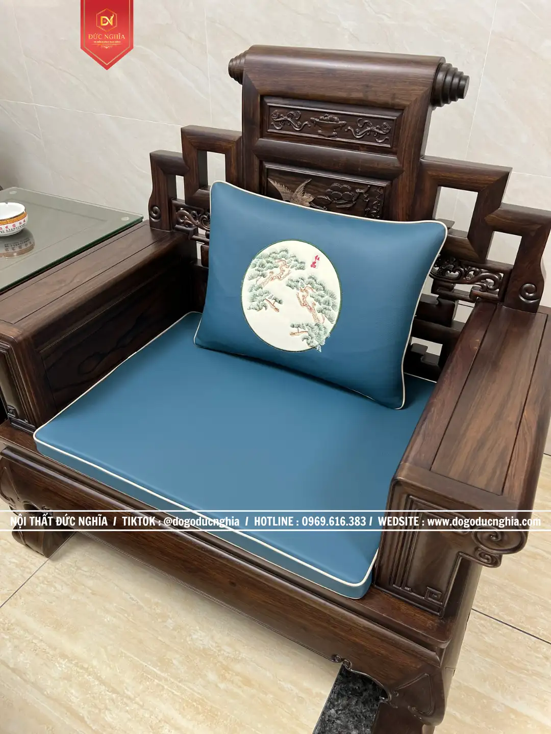 Và với những bộ ghế Sang Trọng như thế này Đồ Gỗ Đức Nghĩa luôn kết hợp cùng với bộ đệm da Cao Cấp. Được nhập khẩu từ Hàn Quốc với kết cấu từ 4 lớp, dày 5cm : ” Da Microfiber – Xốp – Sơ dừa được ép cùng bông goòng – Cói ” giúp đàn hồi tốt, thông thoáng, bảo vệ cuột sống.