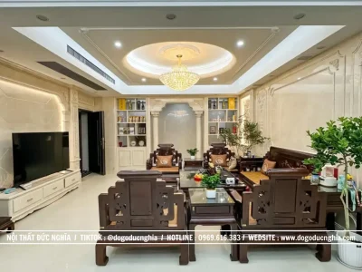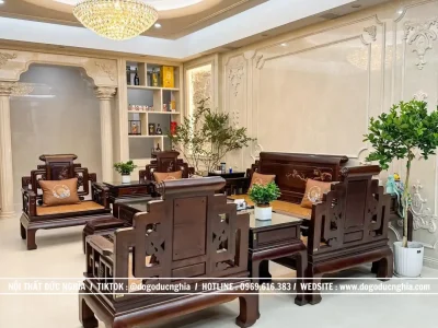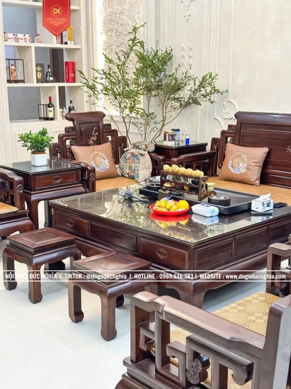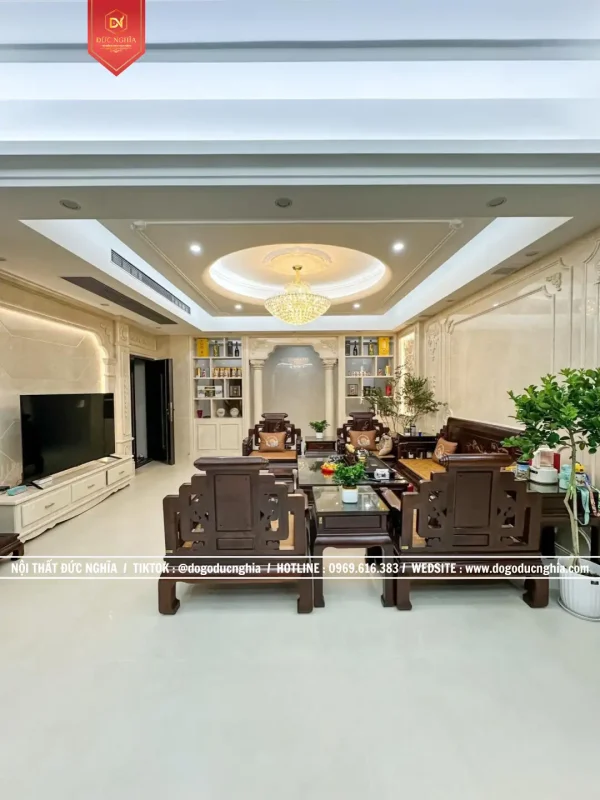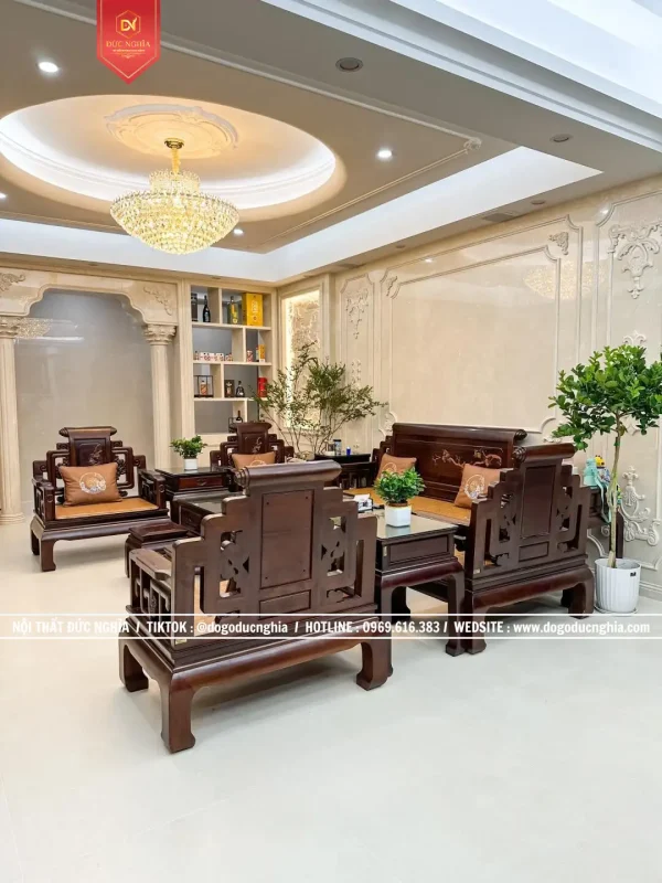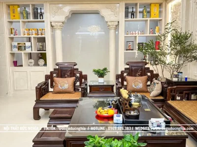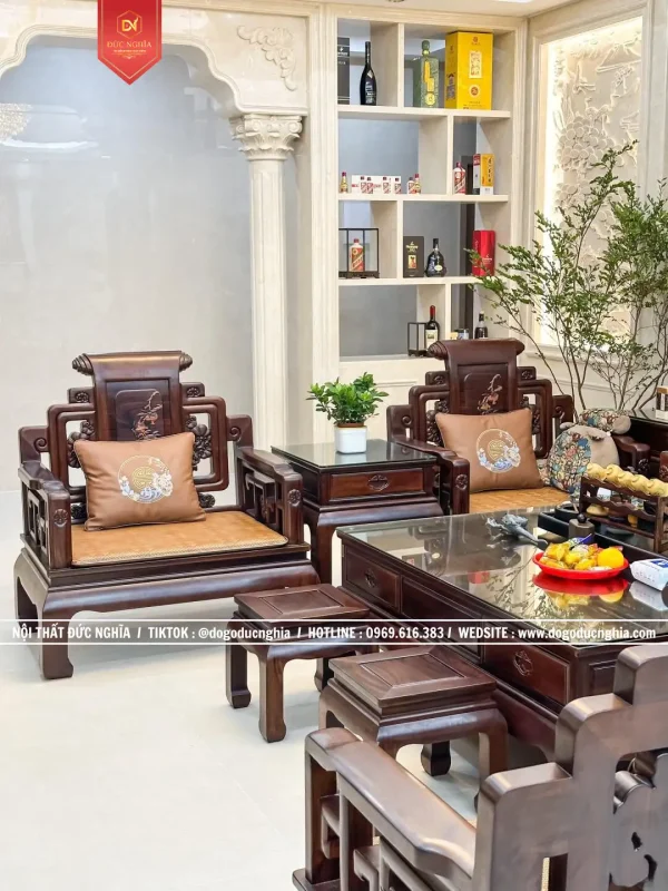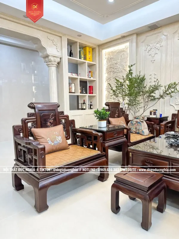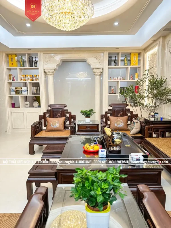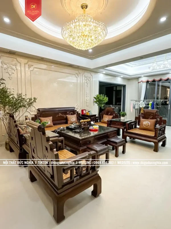 KHÔNG GIAN PHÒNG KHÁCH SANG TRỌNG VÀ ẤM CÚNG – DẤU ẤN TỪ BỘ GHẾ ĐẠI PHÚ QUÝ CỦA NỘI THẤT ĐỨC NGHĨA