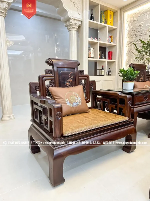 Có thể nói, bộ ghế Đại Phú Quý của Đức Nghĩa không chỉ đơn thuần là sản phẩm nội thất, mà còn là tác phẩm nghệ thuật – nơi hội tụ tinh hoa của tay nghề thủ công Việt cùng gu thẩm mỹ tinh tế. Sự kết hợp hài hòa giữa chất liệu, màu sắc, họa tiết và bố cục đã tạo nên một không gian phòng khách tinh tế – sang trọng – ấm cúng, thể hiện rõ phong cách sống đẳng cấp và gu thẩm mỹ của gia chủ.