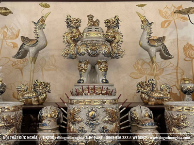 Mặt ban thờ rộng rãi và được thiết kế nhị cấp để gia chủ có thể bày biện được rất nhiều vật phẩm.